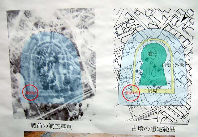 長塚古墳・全容図/戦前の同遺跡航空写真