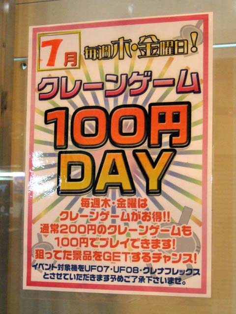 7月の木・金は、クレーンゲームサービスデー アーバンスクエア大須