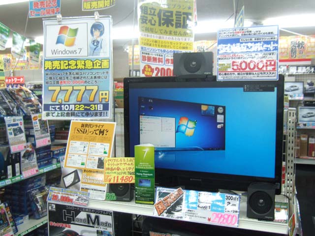 コムロード店舗店頭では、Windows7の