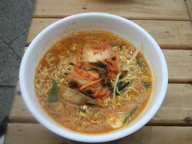理店で、韓国風の辛ラーメンが