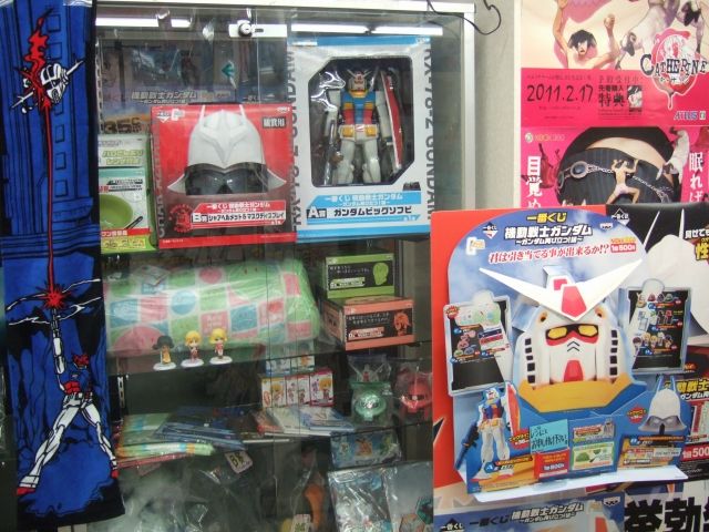 大須のWonderGOO・2Fレジ横では、連邦軍の鹵獲品展示場所のようなショーケースあり。
