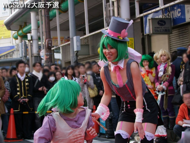 「世界コスプレサミット2012」日本代表選考会・大阪予選が、2012年3月20日大阪・第8回日本橋ストリートフェスタ会場にて開催。事前応募の中から4チームが参加。大勢の観客が見守る中で、それぞれのキャラクターパフォーマンスを競い合いました。