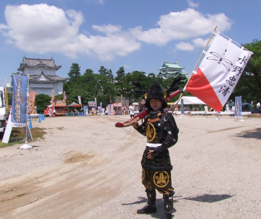 【写真】名古屋おもてなし武将隊・週末演武に飛び入り参加する「刈谷城築城盛り上げ隊」本多忠良殿・水野忠清殿刈谷市「刈谷城築城480年」記念事業の一環として、結成されたこちらの武将隊、刈谷城主「水野勝成」公(徳川家康公の従弟)を筆頭に、今回水野忠良殿、土井利信殿、本多忠良殿が、名古屋城・まるはち博覧祭に来場、刈谷市に縁深い武将のPRを実施。各武将、それぞれが旗印を背に背負い、自身の存在感をアピール。