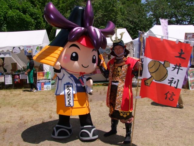 左:本多忠良殿 右:マスコットキャラクター「かつなりくん」
