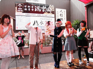 今年2013年9月14日(土)9月15日(日)の2日開催にパワーアップした愛知「大ポプカル展」のプレイベントが、2013年7月13日(土)に大須・萬松寺境内イベントスペースにて開催。当日は、愛知PRコスプレ大使3名と共に、シンガーソングライター阿部ゆりかさんによる「ポップコーン〜ぽぷかるちゃんへのラブソングver.」完成お披露目会♪ また、飛び入りゲストにあの今名古屋ネタで一番熱い作家も登場!