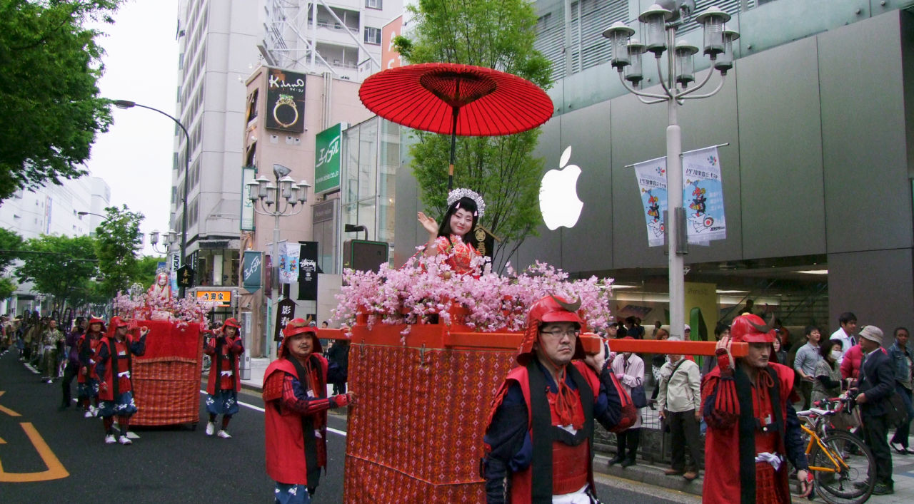 第20回春姫道中が、2014年4月20日(日)に名古屋にて開催。主パレード会場となった大津通では、午後1時から、お輿入れ道中を再現した大名行列が、矢場町交差点を出発し、名古屋城に向かって進みました。大村愛知県知事や河村名古屋市長も家臣に扮して参列。