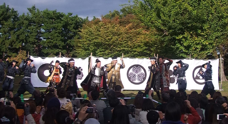 新演目「天下統一の巻」を熱演する名古屋おもてなし武将隊・徳川家康殿「名古屋城秋の陣」で賑わう名古屋城では、3連休最終日2014年11月3日(月祝)、ご当地武将隊「名古屋おもてなし武将隊」が結成5周年を迎え、盛大な記念イベントを実施。多くのファンに囲まれる中、新演目「天下統一の巻」を披露。まだ、2014年10月29日にリリースされたミニアルバム「不離威騎!」より、新曲「不離威騎!」を歌い上げました。