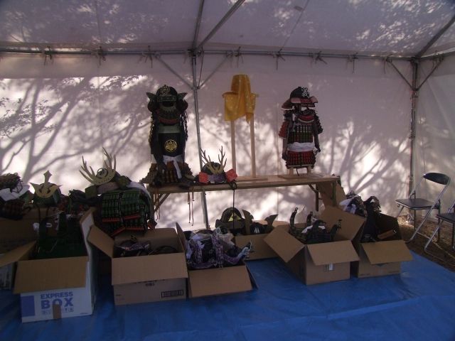 会場には、伊澤昭二氏による甲冑展ブースを始め、愛知県内自治体のPRブース、あいち手作り甲冑塾・桶狭間古戦場保存会をはじめとした甲冑試着体験コーナーは、お子様連れの家族に大人気で、午前中には体験予定者受付が満了する盛況ぶりでした。