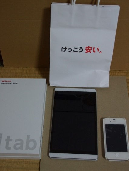 最近、大阪から名古屋に出店されたイオシスさん店頭にて、スペックをうかがいながら、「タブレットは、動作保障無いから、動くがどうか分からんぞ」としっかり釘をさされて、中古のDocomo dtab d-02H を購入。