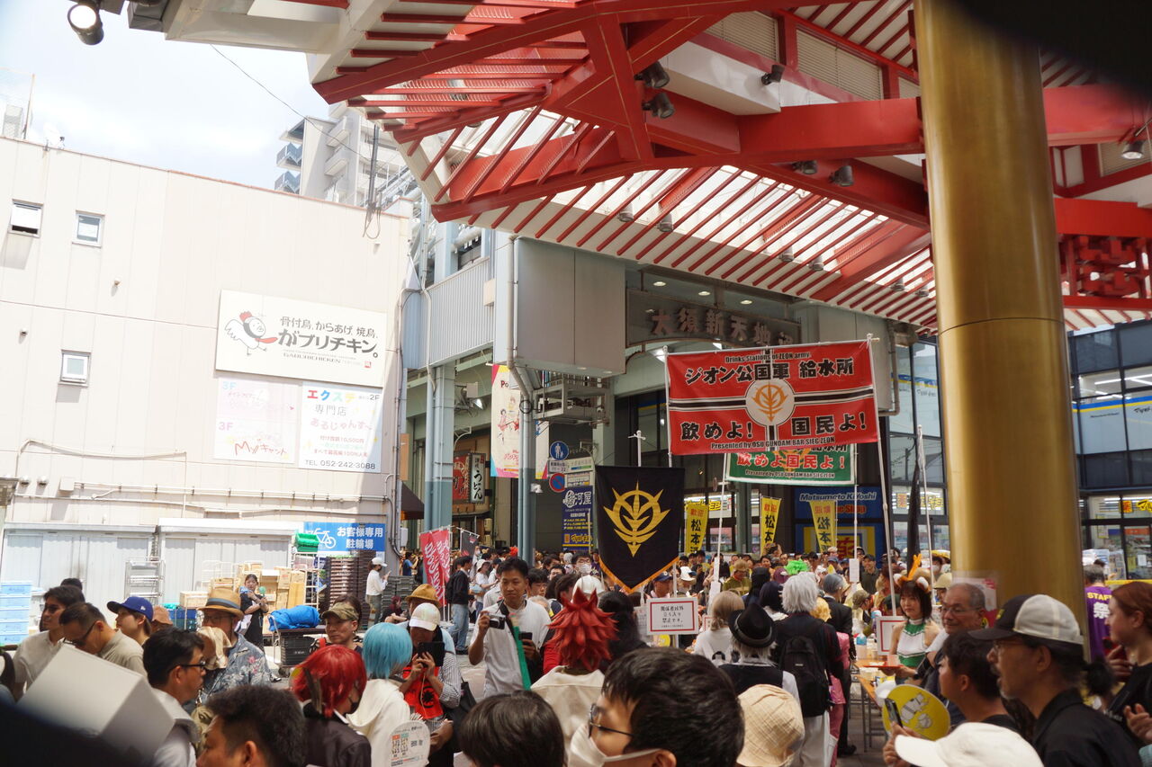2004年より大須商店街との協力で始まった各国トップコスプレイヤーチームを先頭に実施されるコスプレパレード、今年で20周年を迎え、過去最大規模に。大須観音横から始まり、上前津招き猫モニュメントを折り返して、再び大須観音へ戻る全長約1kmのパレードコースになります。朝9時半より配布された参加整理券450枚は、10数分で参加希望者予定数に達し、そのあとにパレード続く形で、コスプレイヤーがそぞろ歩き。全体で徒歩約45〜50分のパレード、境内を出発した先頭が、再び大須観音に戻るころ、最後尾が大須観音待機場所を出発する1kmの日本最大規模のパレードになりました。