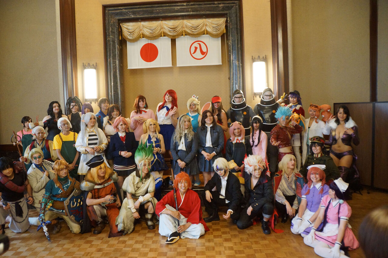 この後、正庁演壇にて、「コスプレ エブリウェア」の掛け声で。集合記念撮影を実施。
