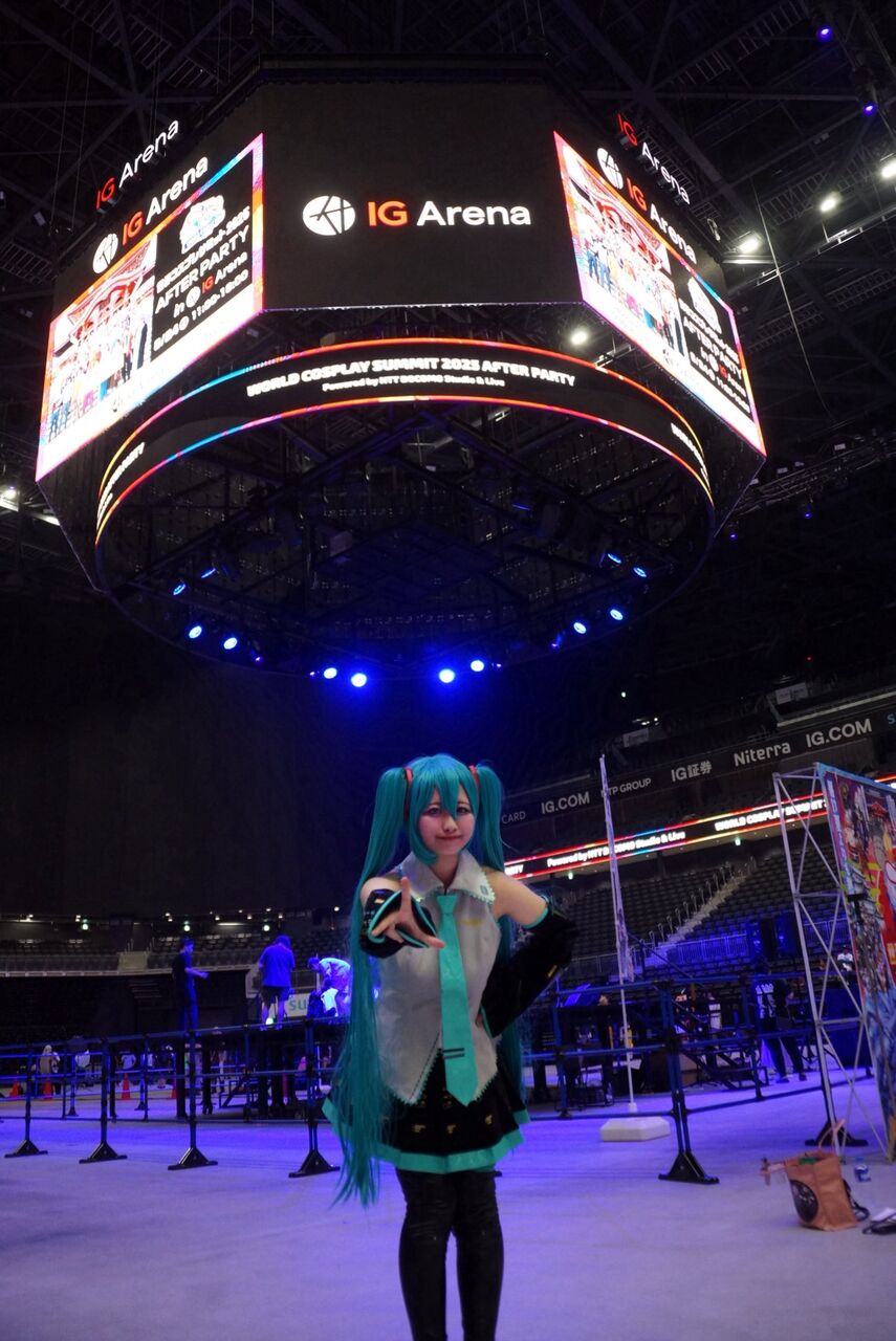 大相撲名古屋場所の新会場としてデビュー、最大17000人を収容可能を誇り、来年2026年アジアスポーツ大会のバスケ・柔道の会場として注目を集める複合新施設「IGアリーナ」が、今回コスサミのアフターパーティ会場として開催。普段ロケ会場としてなかなか利用できないこともあり、開場前には、600人を超えるコスプレイヤー/カメラマン/ライブ参加者が長蛇の列で人気ぶりを魅せました。。