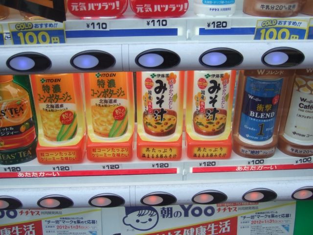 別ベンダー(伊藤園)の自販機に、この味噌汁缶を改めて見たときは、ちょっと感慨深いものを感じます。