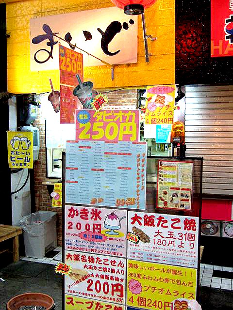 出かける度に、新メニューが増えてくる新天地のたこ焼き屋「まいど」が、今夏、タピオカドリンクのフレーバー数の世界一を目指して、メニューの更新中。