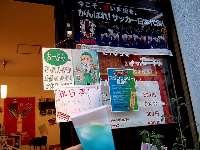 W杯・日本代表の決勝トーナメント進出を記念して、赤門通ライスコロッケ専門店「TAMAHAN」では、店頭飲食利用者に、日本応援ドリンクのサービス中。