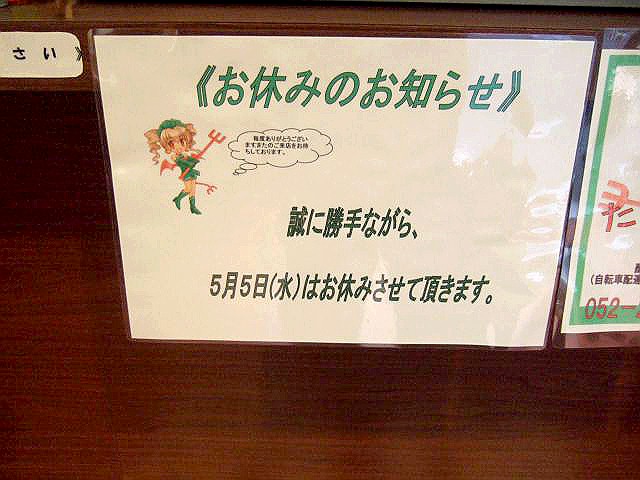 万松寺横にあった、営業中は、恐竜のでっかい看板を店の前に置いて、営業していることをPRしいてた、たこ焼き屋さんが、先日閉店。店舗にこれまでのお客さんへの挨拶が掲示。最近は、週末気まぐれに営業していて、終わり間近に行くと、たい焼きサービスしてくれたりして、ちょっととっつきにくいけど、知る人ぞ知る大須の名物スポットだっただけに残念です。