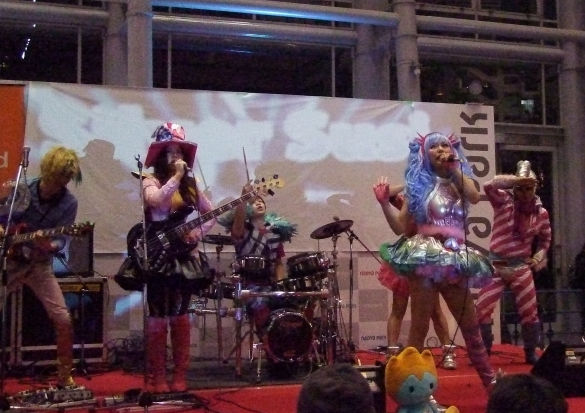 関西のアイドルグループ・宇宙アイドル フレア☆ラ☆モードAceが、ライブ出演の為、名古屋来訪。偶然、金山駅前で、ゲリラをしていたので、ちょっと写真撮らせてもらいました。衣装・振り付けが可愛らしくて、ちょっと釘づけ。夕方は、ストリートライブの人気スポットのこの場所ですが、早い時間帯に来るグループは、とても珍しかったかも。osu_dnews at 23:04|この記事のURL│TrackBack(0)