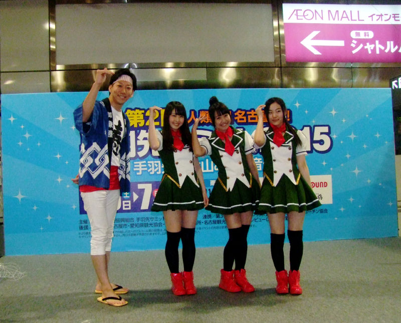 【写真】アイドルステージ会場に登場するご当地アイドル「金星☆ジュリエッタ」のみなさん「第2回手羽先サミット2015」が、2015年6月6日(土)6月7日(日)金山総合駅南口特設会場にて開催。今年は、さらにパワーアップし、出店ブースも40店舗が登場。飲食は、会場で販売されるチケット(1冊1000円(100円券x10枚・投票券付))と一部のブースでは、マナカによる支払も可能(最後尾札に表示あり)