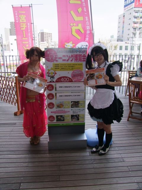 一宮商工会議所(愛知県)は、恒例となった「一宮モーニング博覧会」を開催。2013年10月14日(月祝)には、今夏WCS2013にて発表のあった「種村有菜さんコスチュームプロジェクト」発表会に伴い、会場となったiビル3Fにあるカフェレストラン・イチモでは、今回、イベントを盛り上げるべく、一宮本町商店街にあるメイド喫茶「まぁめいど」のキャストさんが、応援でメイドさんやコスプレ姿にて接客。モー博イベント会場を盛り上げました。