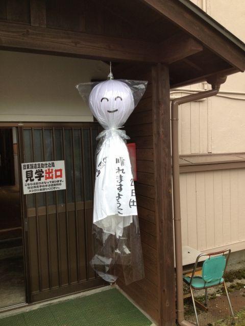 しろたまり仕込蔵前につるされた巨大てるてる坊主。