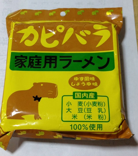 東海地区のご当地ラーメンで注目を集める小笠原製粉さんのラインナップで、「カピパララーメン」が出ていたよ と、友人からお土産貰いました。キリンラーメン・ペンギンラーメンは知っていましたが、こちらは初めて見た。