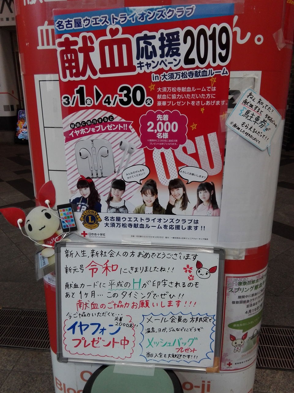 この他、愛知県下の各献血ルームでも実施予定 ポスター配布数には、各会場限りがあり、混雑する場合は、栄・名駅・金山など最寄りの献血ルームにお問い合わせして、お出かけするのも良いかも。